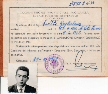 Attestato Operatore Cinematografico Guglielmo Sestito